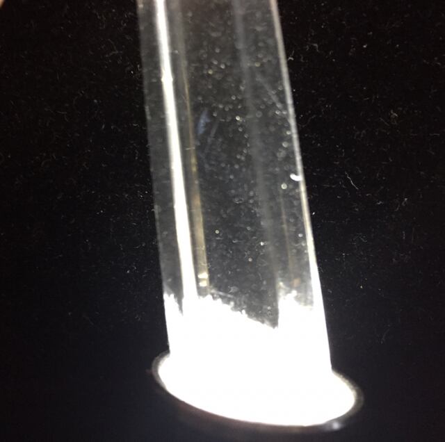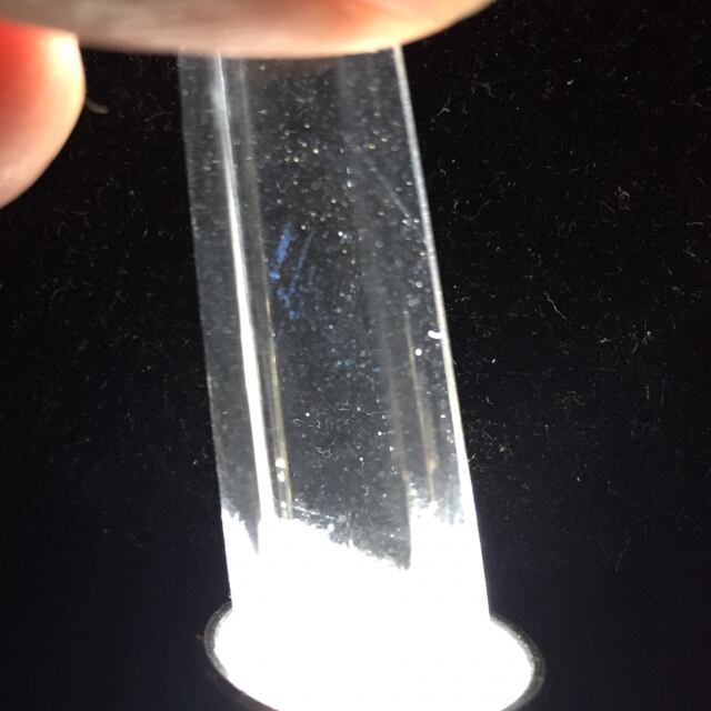光を当てると非常に綺麗なブルーに輝く内包物が鮮やかに現れます。