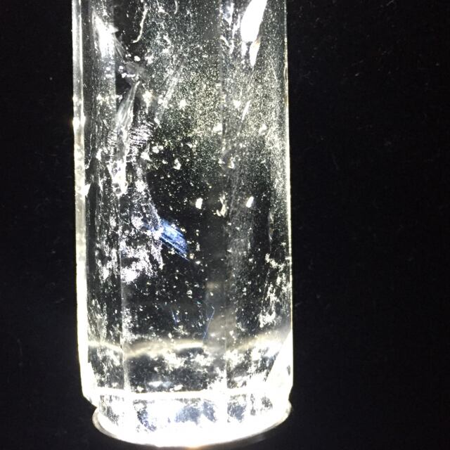 光を当てると非常に綺麗なブルーに輝く内包物が鮮やかに現れます。