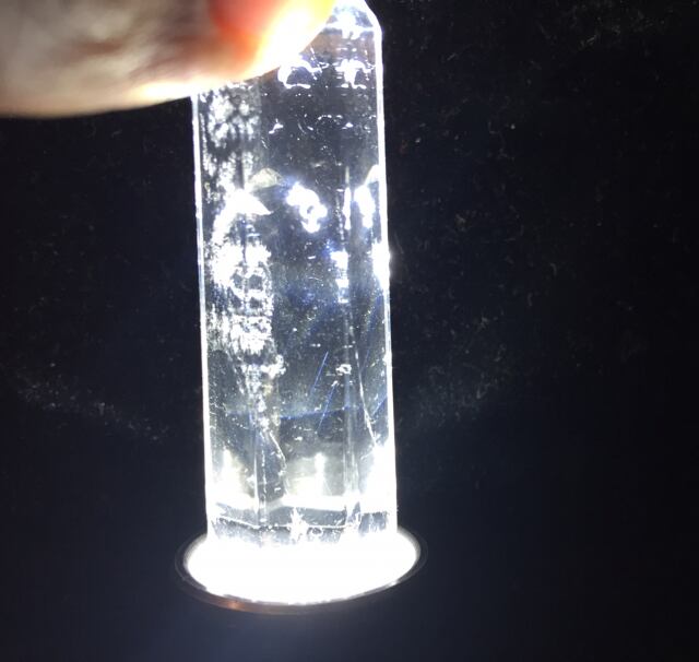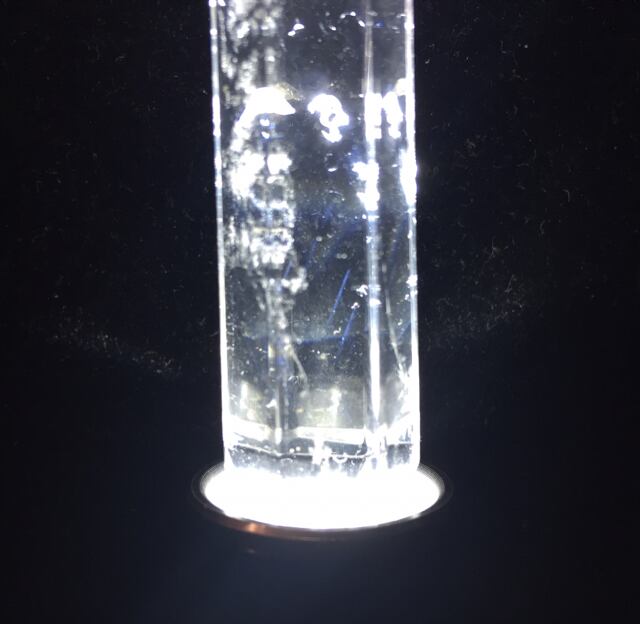 光を当てると非常に綺麗なブルーに輝く内包物が鮮やかに現れます。
