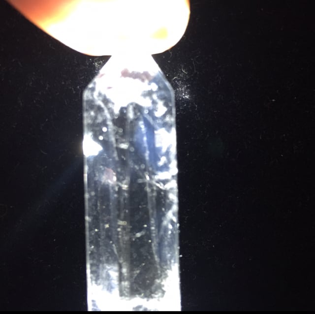 光を当てると非常に綺麗なブルーに輝く内包物が鮮やかに現れます。
