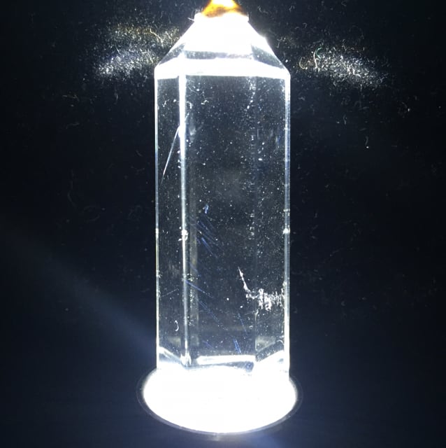 光を当てると非常に綺麗なブルーに輝く内包物が鮮やかに現れます。
