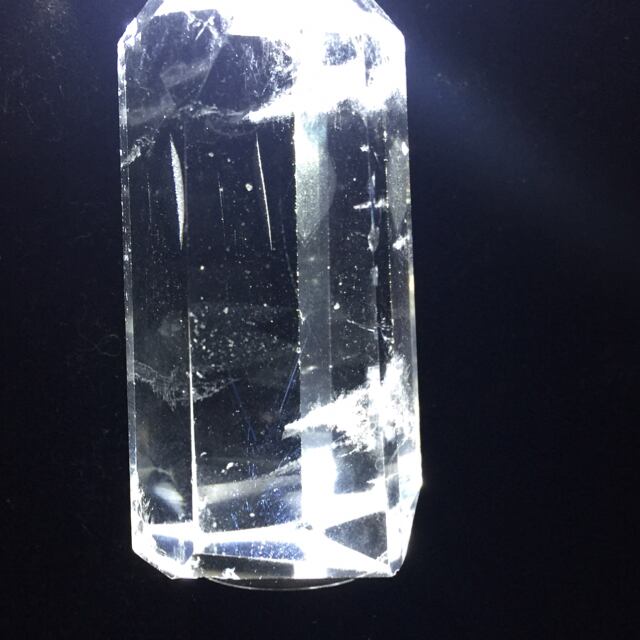 光を当てると非常に綺麗なブルーに輝く内包物が鮮やかに現れます。
