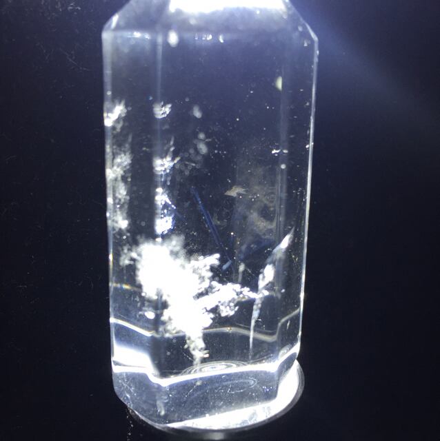 光を当てると非常に綺麗なブルーに輝く内包物が鮮やかに現れます。