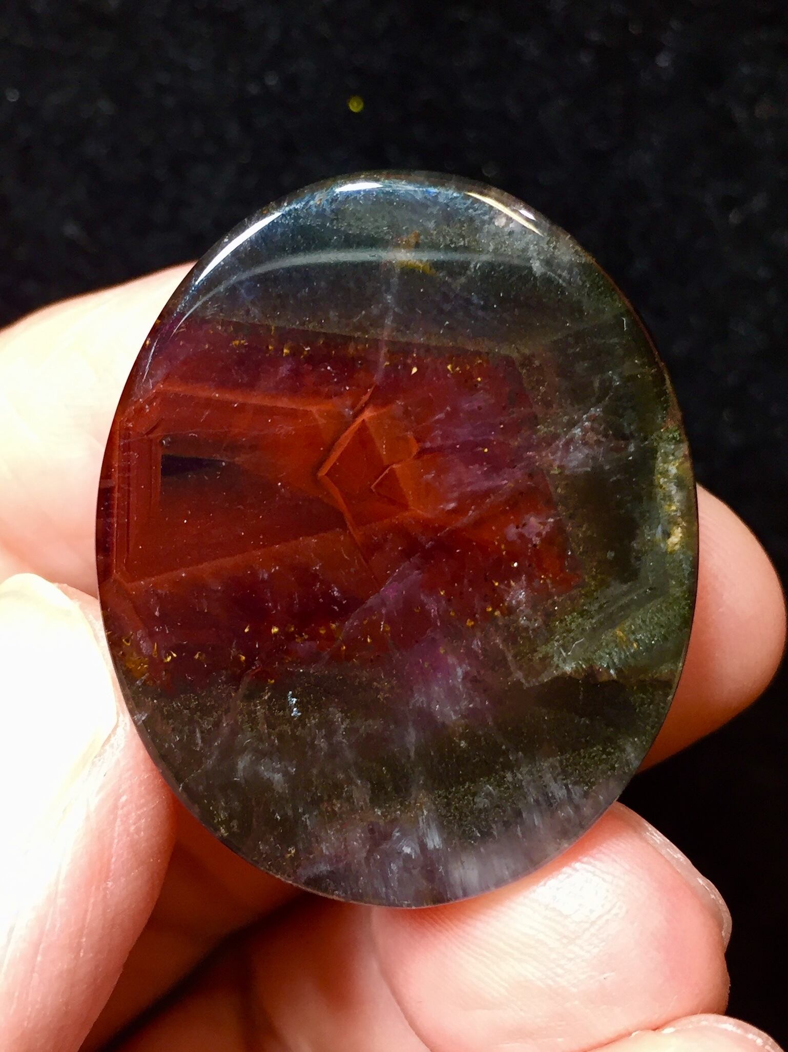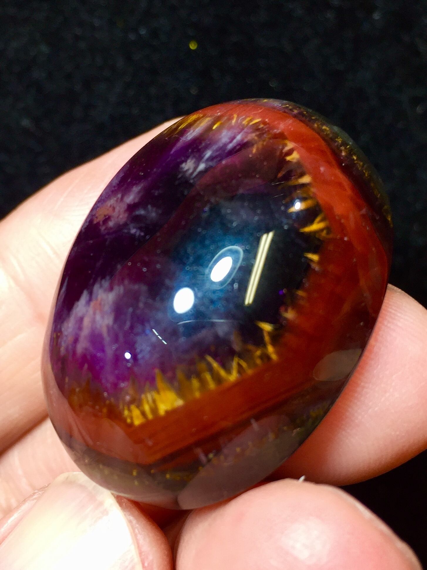 7〜8層のカラーで構成されており、カコクセナイト、アメジスト、プラシオライトなど様々な鉱物が入り込んでいます。