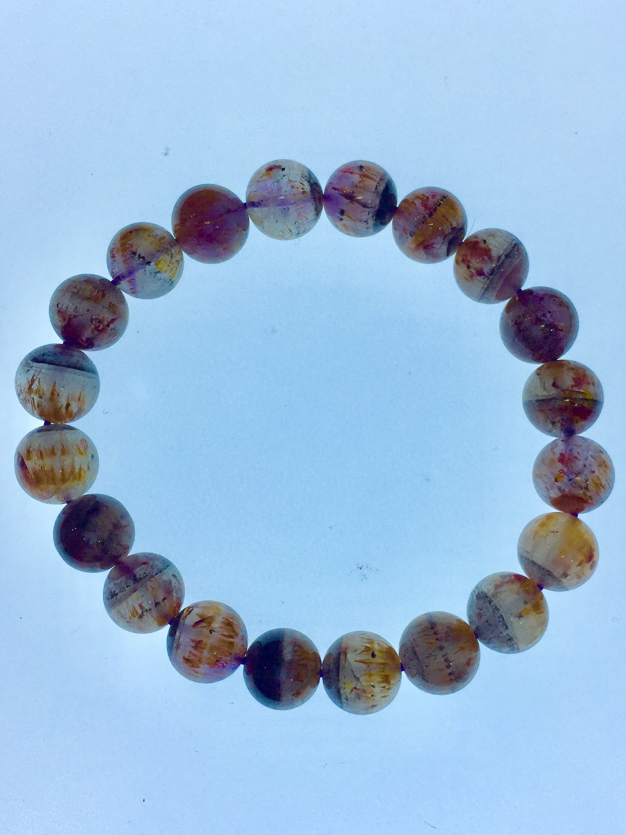 7〜8層のカラーで構成されており、カコクセナイト、アメジスト、プラシオライトなど様々な鉱物が入り込んでいます。