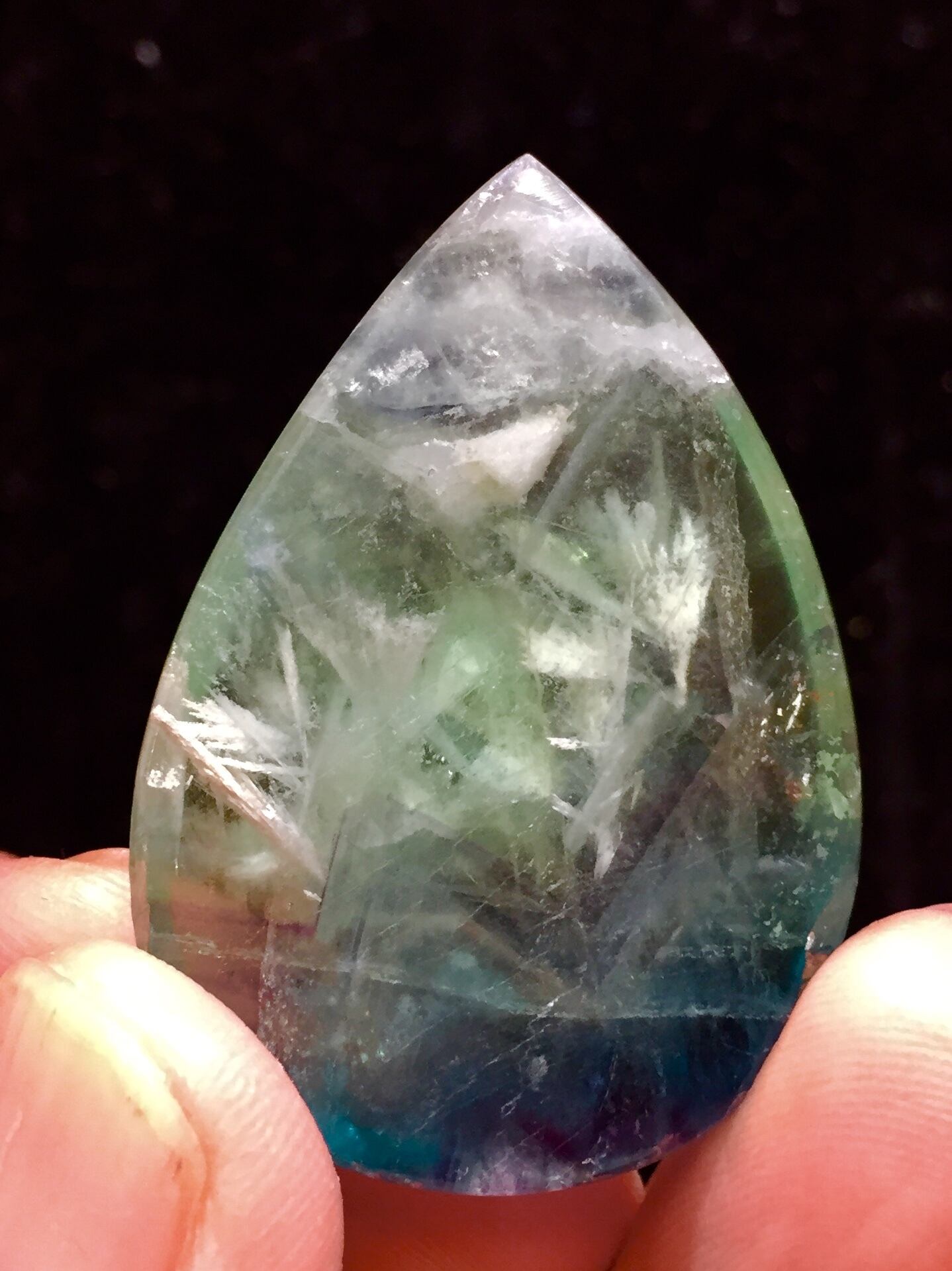 綺麗なフローライトにカルサイトの鮮やかなエンジェルフェザー(天使の羽)が入ったルース。