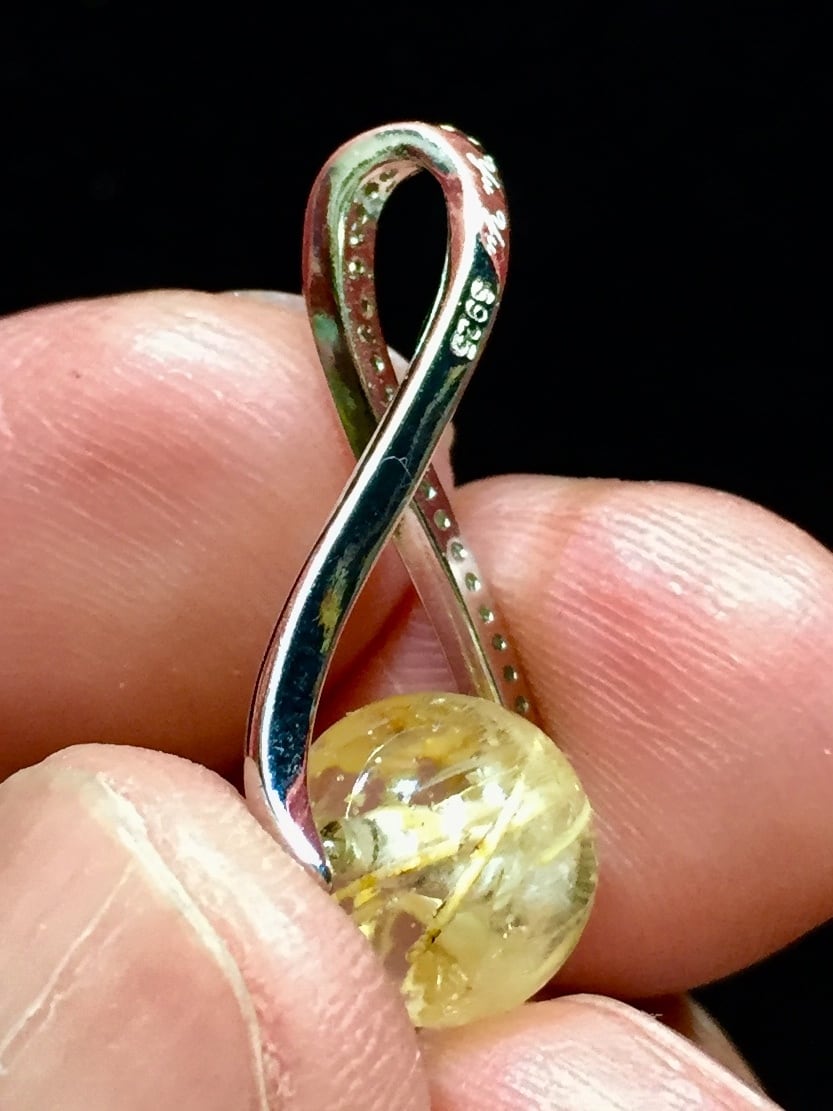 護身の役割だけではなく、宇宙のエネルギーを持ち主に流すといわれる「オーロラ・ポセイドン」の小枝を樹脂の中に入れてビーズ加工。