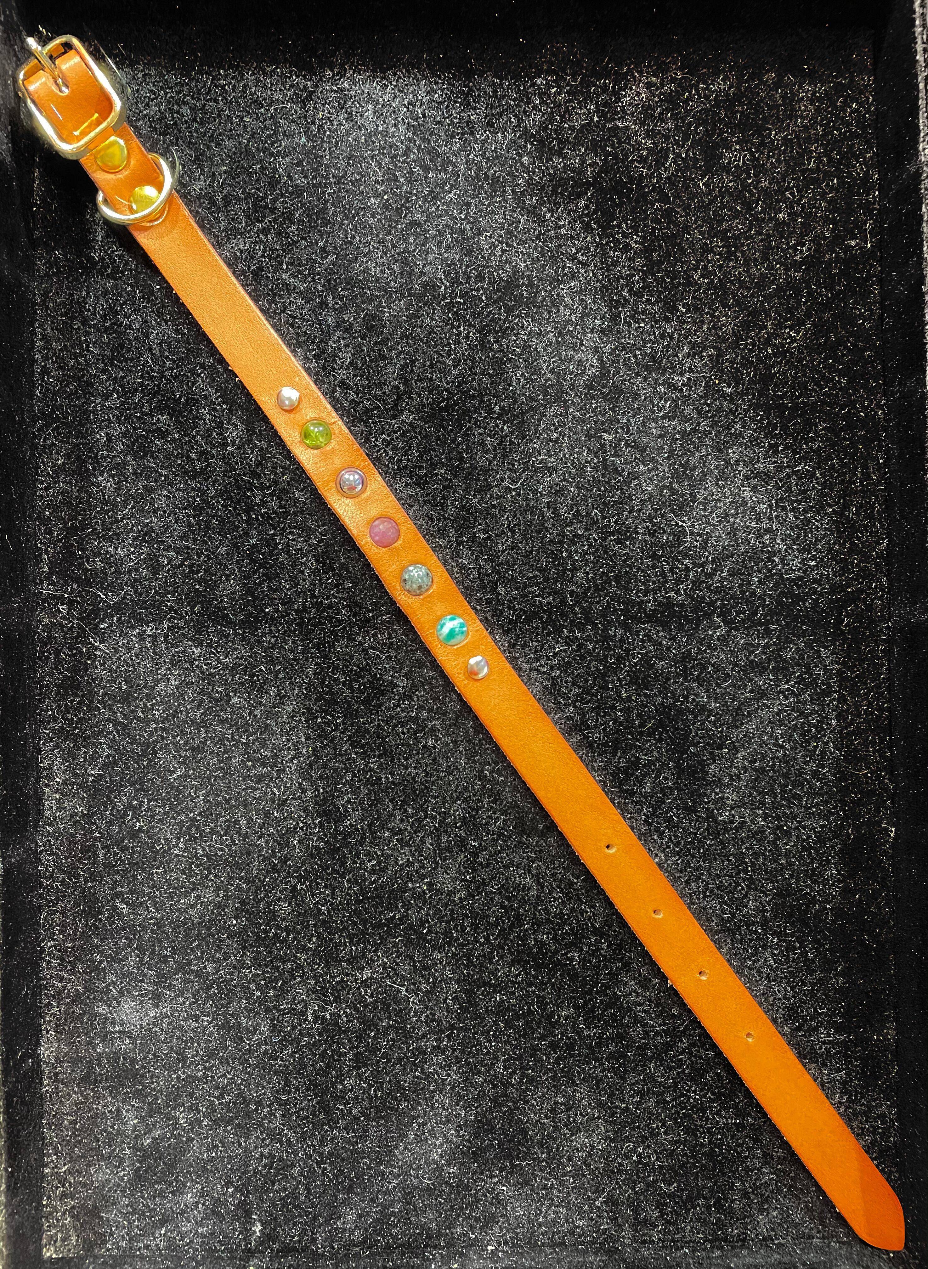 本牛革ベルト(小さなサイズをご希望の場合は、ご自身で穴を開けて頂くことで、より小型のペットにご使用頂けます)茶色