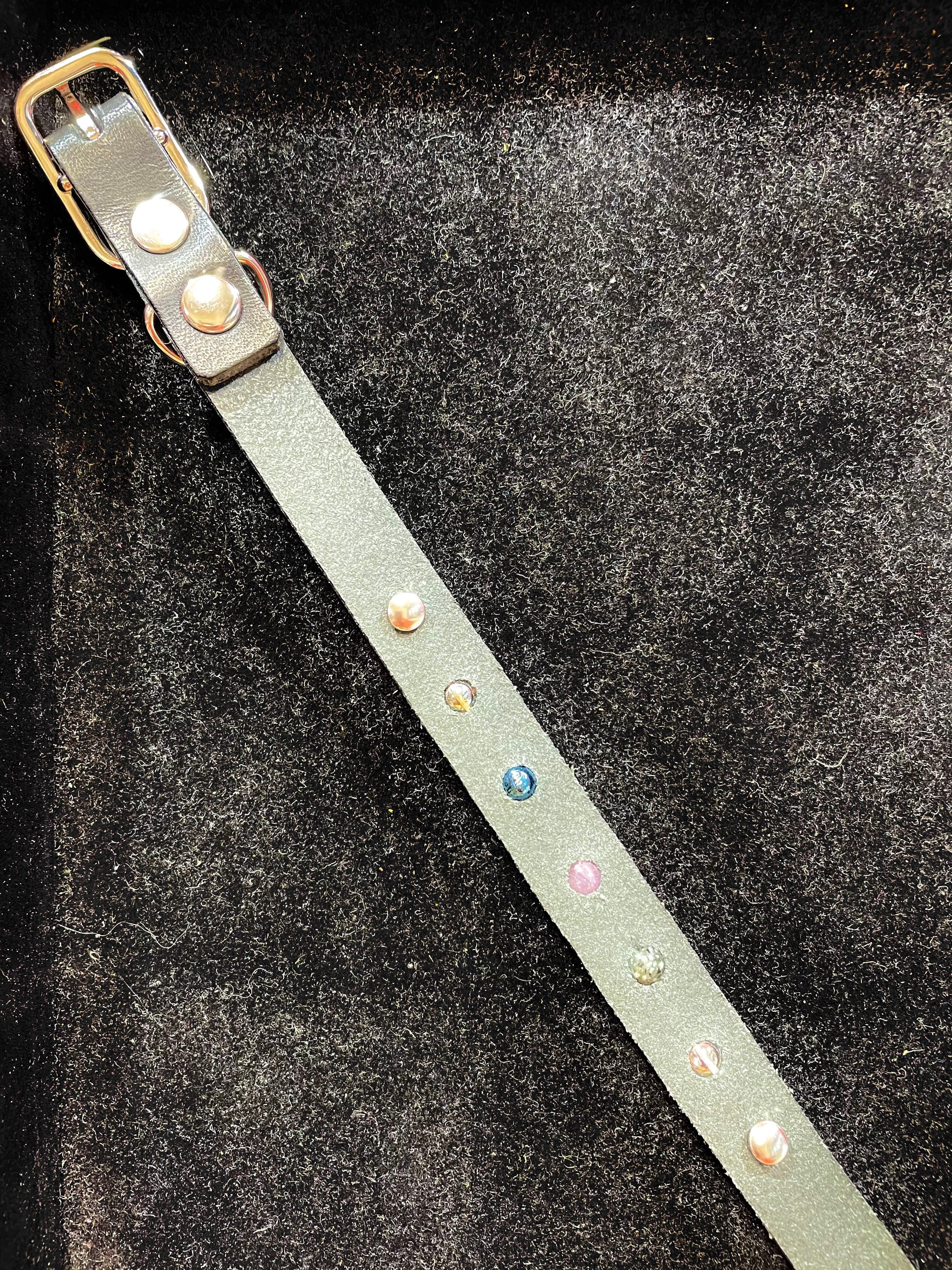 本牛革ベルト(小さなサイズをご希望の場合は、ご自身で穴を開けて頂くことで、より小型のペットにご使用頂けます)黒色