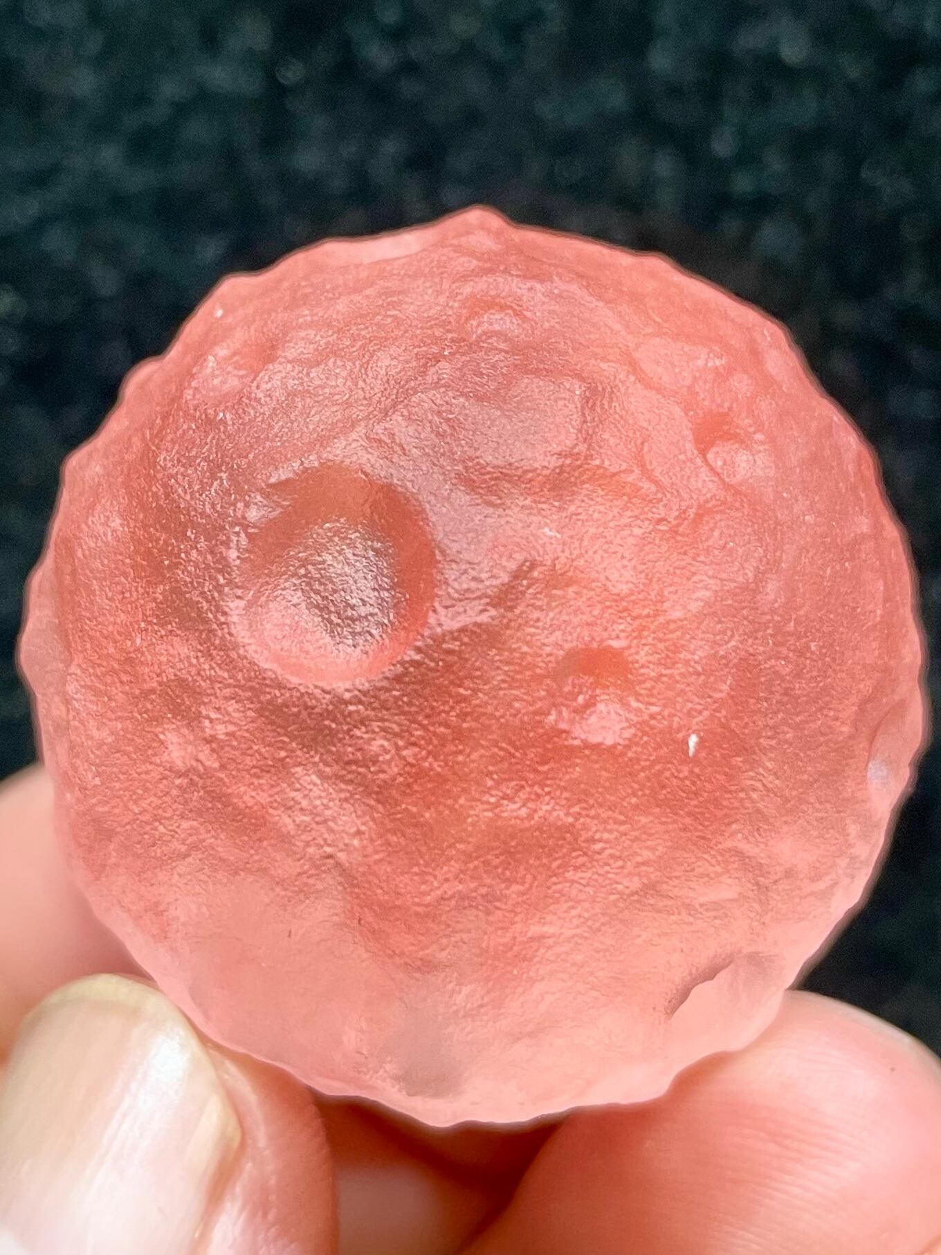 大変透明度の高い水晶に鮮やかなカラー染色を施している「癒しの満月」。