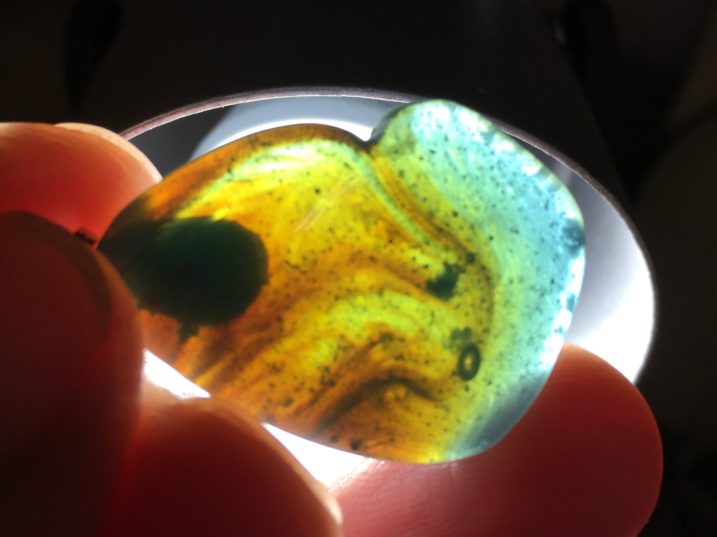 人工的な廃棄鉱物と自然な鉱物成分が混ざり合い出来た半人工、半自然の希少な鉱石なので、様々な成分が混ざり合う事が魅力ある源なのかもしれません。