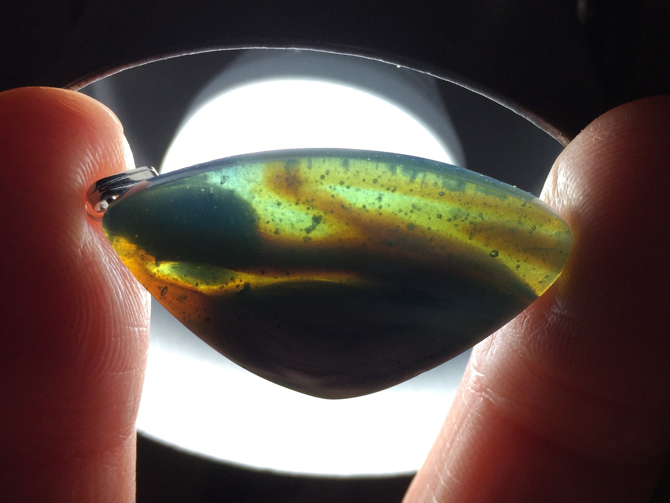 人工的な廃棄鉱物と自然な鉱物成分が混ざり合い出来た半人工、半自然の希少な鉱石なので、様々な成分が混ざり合う事が魅力ある源なのかもしれません。
