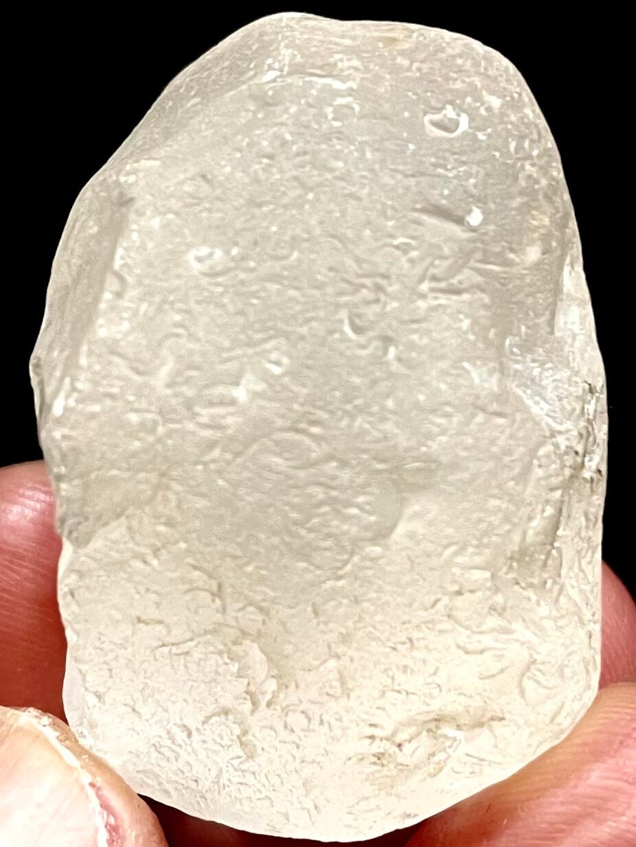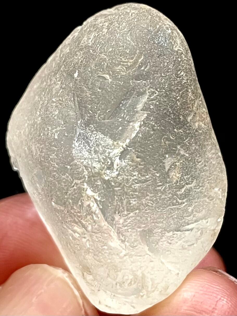 ダイヤモンドや金の鉱床が上流にある川で、川底の窪みに入り込んだ水晶が窪みの中でコロコロ動いているうちに丸く角が取れ、流れて来るダイヤモンドや金と一緒に堆積され(比重の重いダイヤモンドや金は下の方)、長い年月が経ち、川ではなくなり、土で覆われた状態になっても、元々が川であったため、水分が多いその土地に落雷が起きる事で、その高熱により表面が溶けた雷水晶になります。