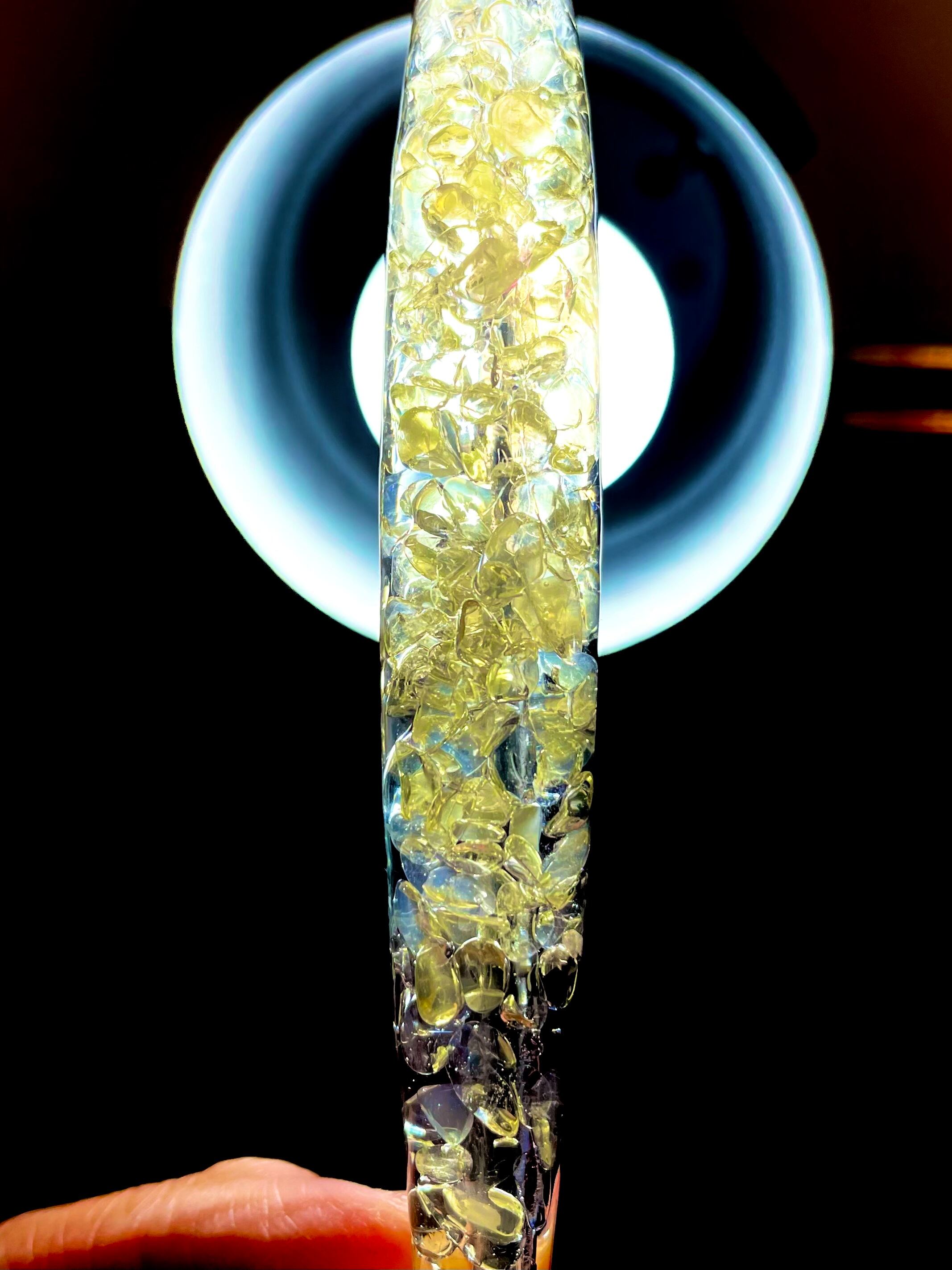 大変カラー鮮やかなパワーストーンを樹脂で包んだ、ハンドメイドの癒しのボールペンです。