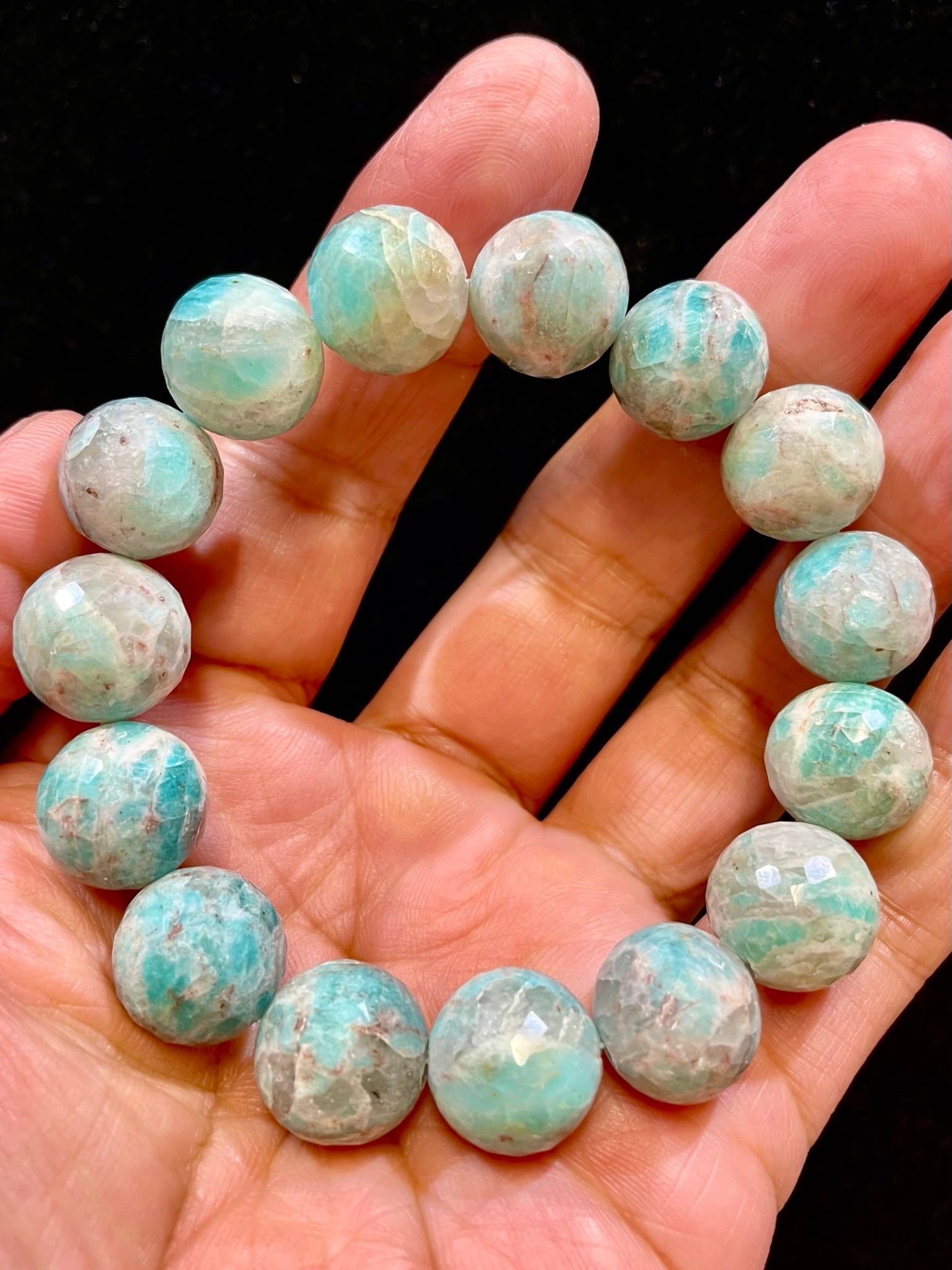 アマゾナイトinクオーツの多面体カットビーズ・ブレスレット。