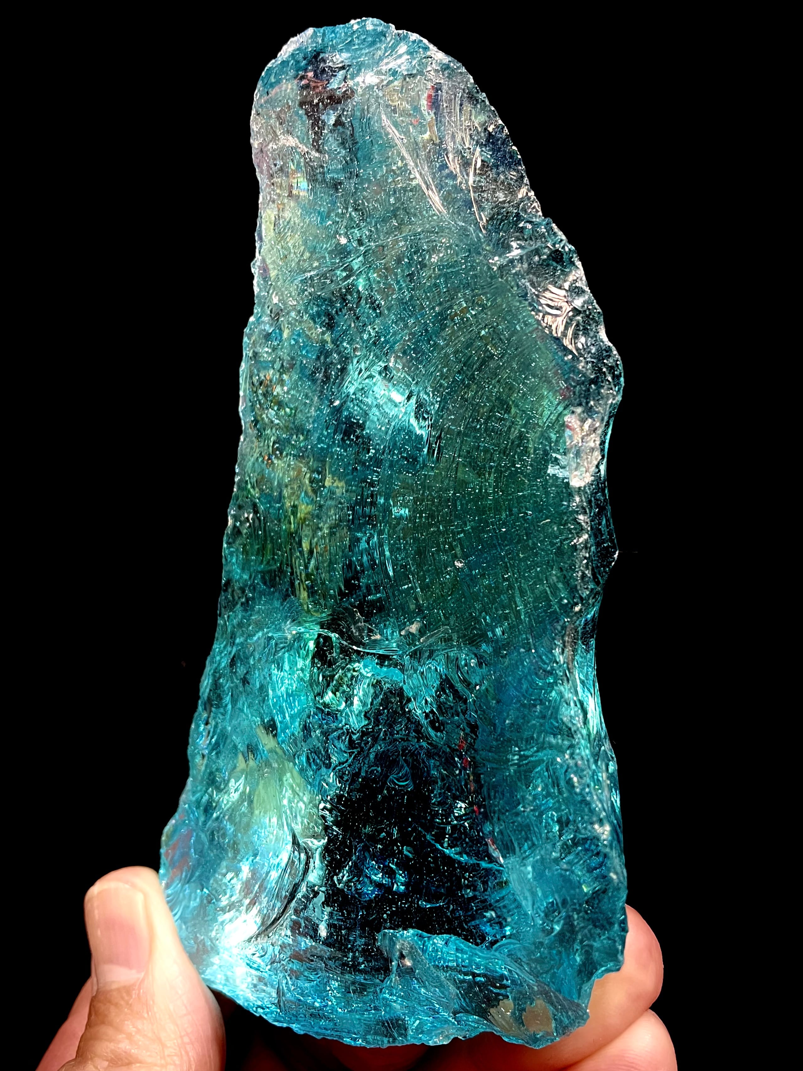 ハワイ島キラウエア火山の溶岩、火山灰を溶解して加工したガラスであるという説があります。