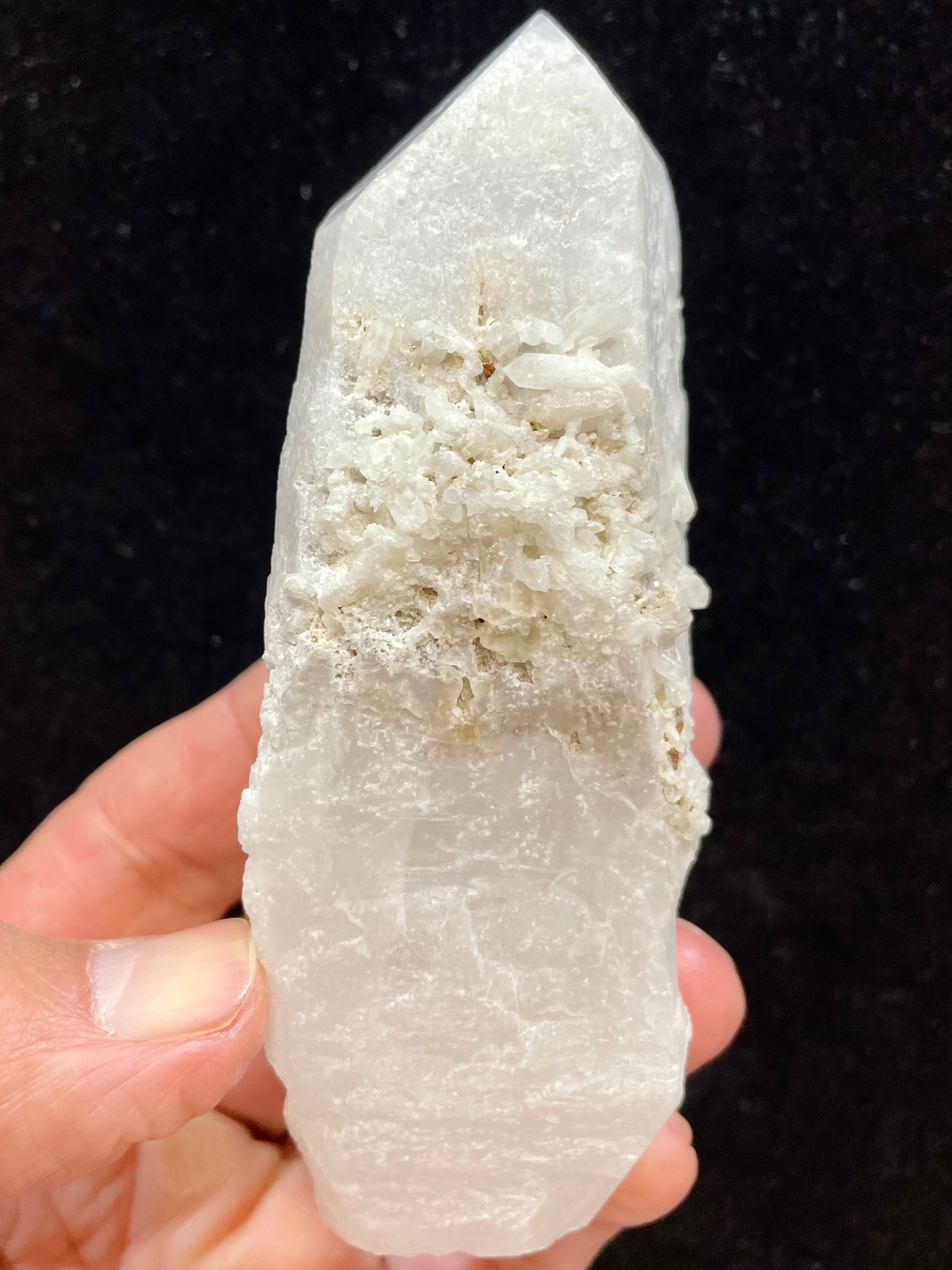 表面の1〜2ミリ程は水晶に空気が混ざっているため白濁していますが、中は大変透明度の高い水晶になっております。
