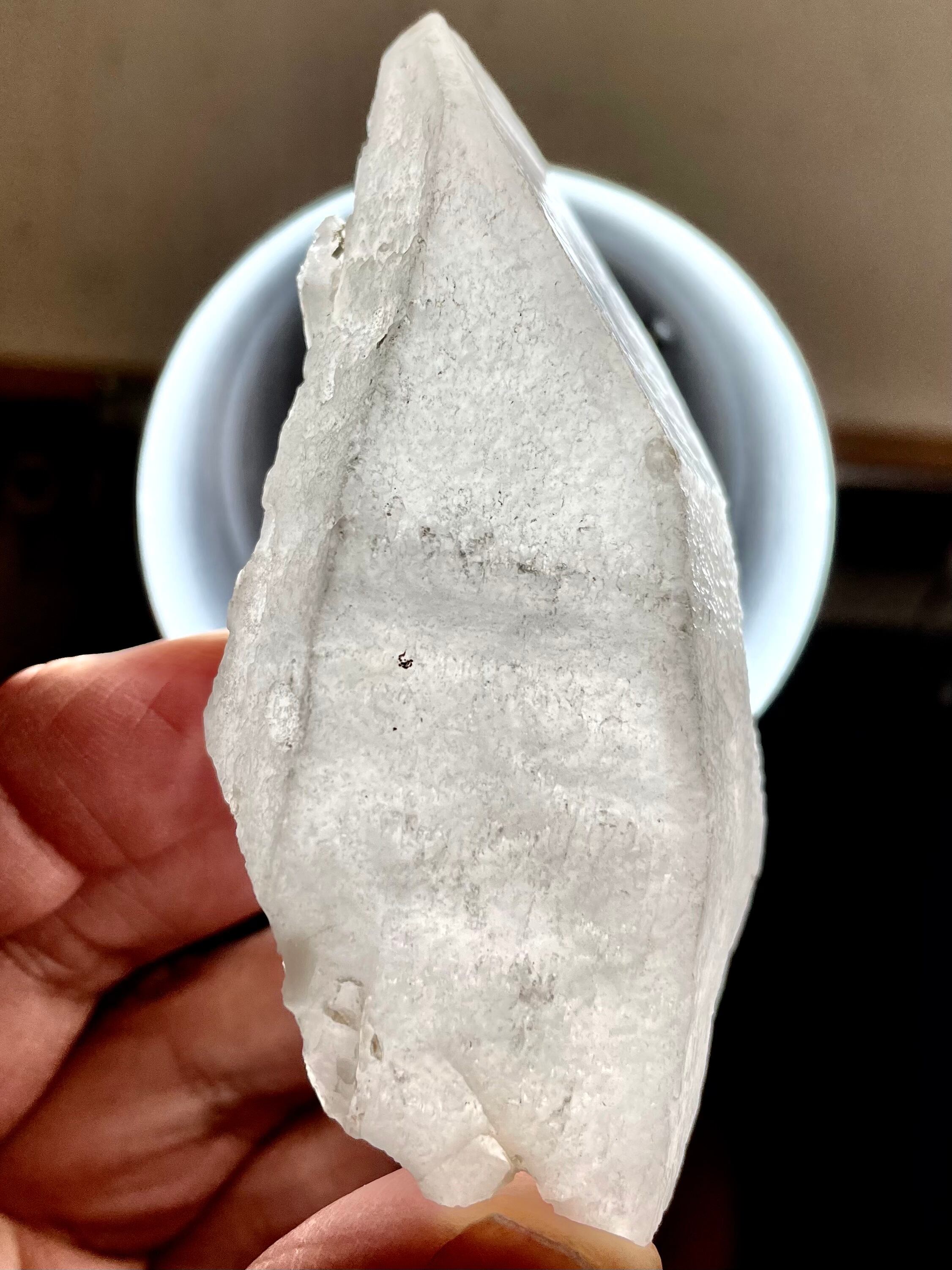 表面の1〜2ミリ程は水晶に空気が混ざっているため白濁していますが、中は大変透明度の高い水晶になっております。