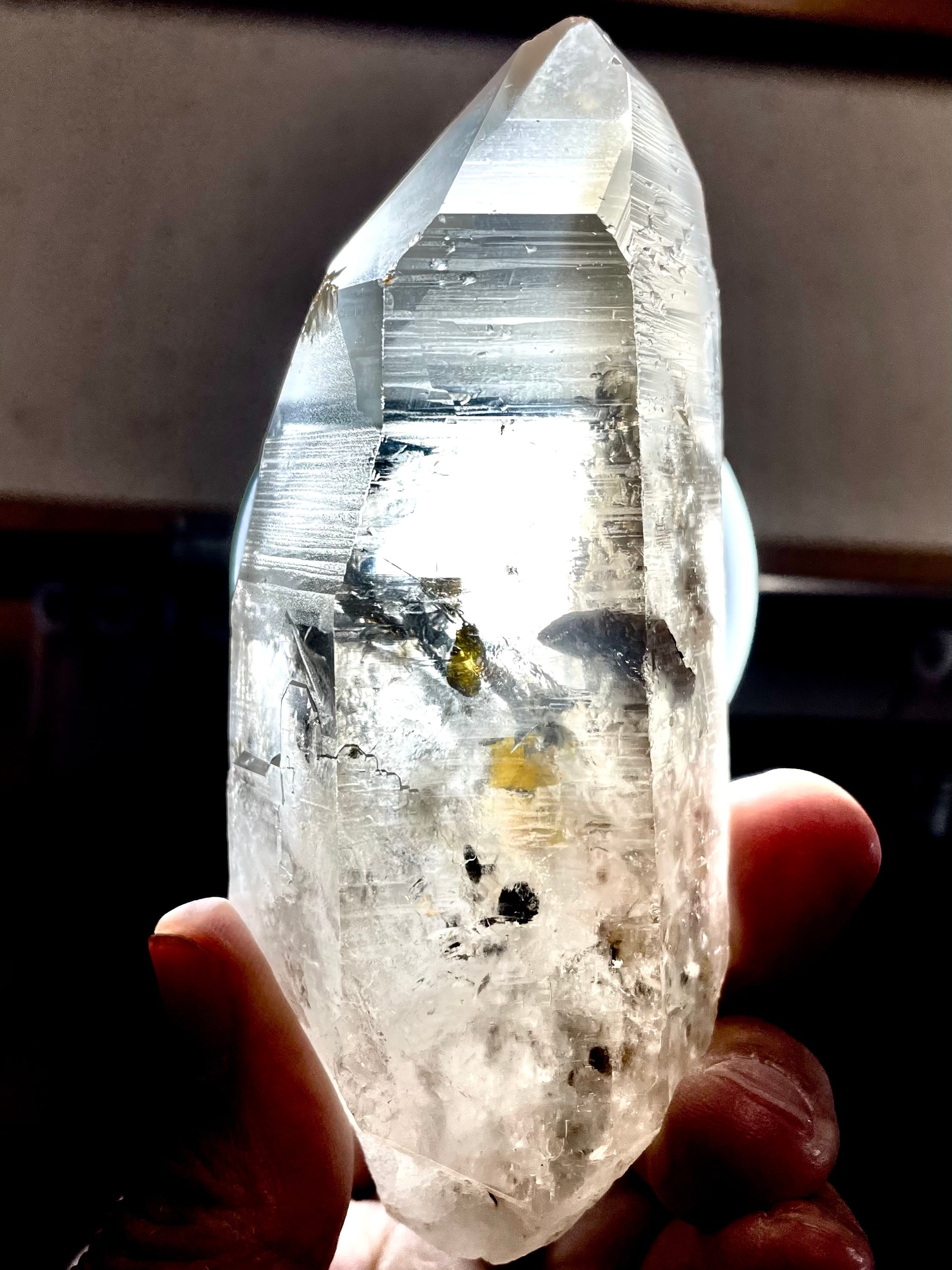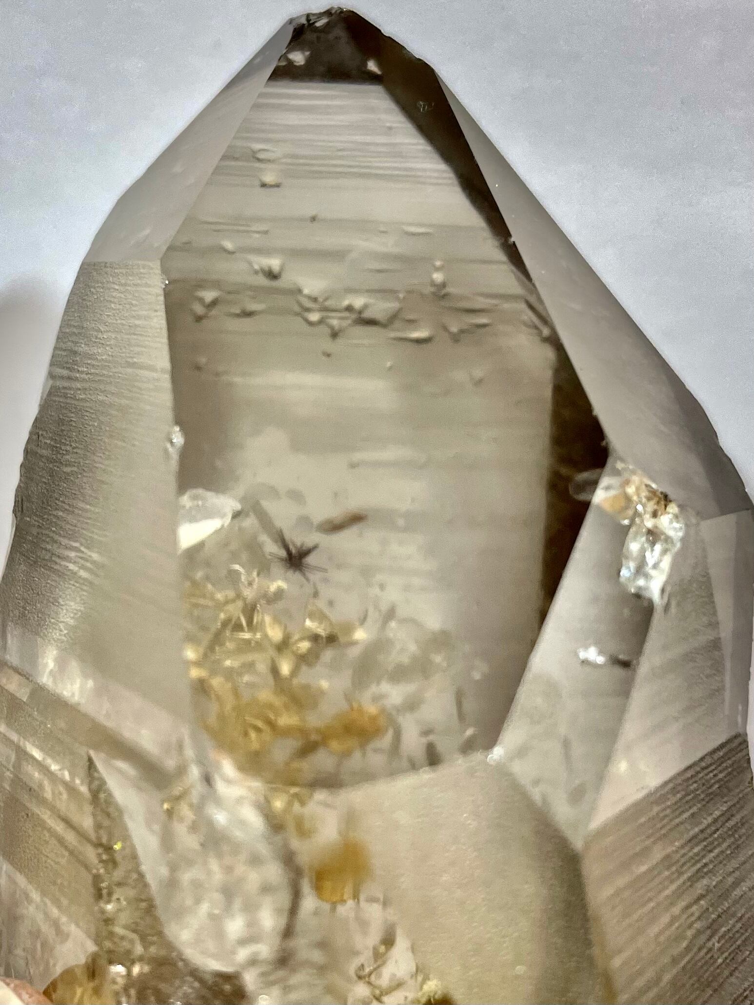 スモーキーレムリアンの中にルチルによってウニのような「毛玉」が形成されている極めて珍しいクリスタルです。