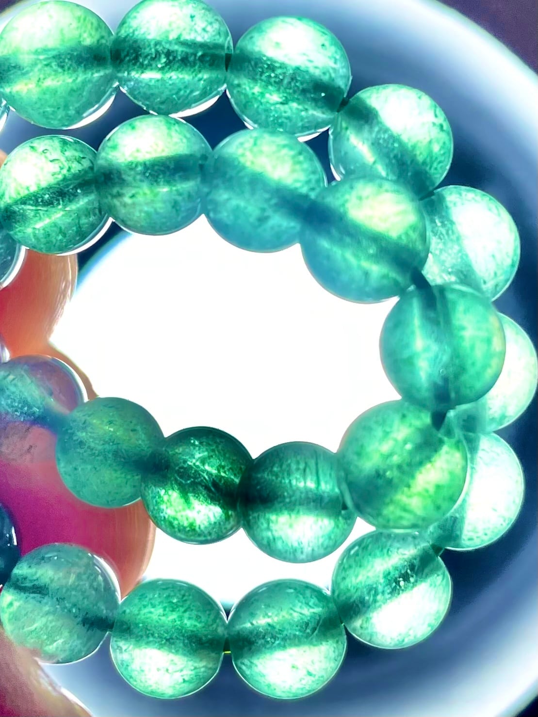鮮やかなグリーン、透明感あるブレスレット。