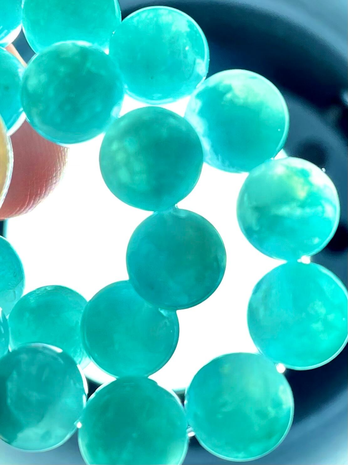 鮮やかなコーラルブルーのアマゾナイトと水晶の共生により、独特の質感をもたらしているブレスレットです。
