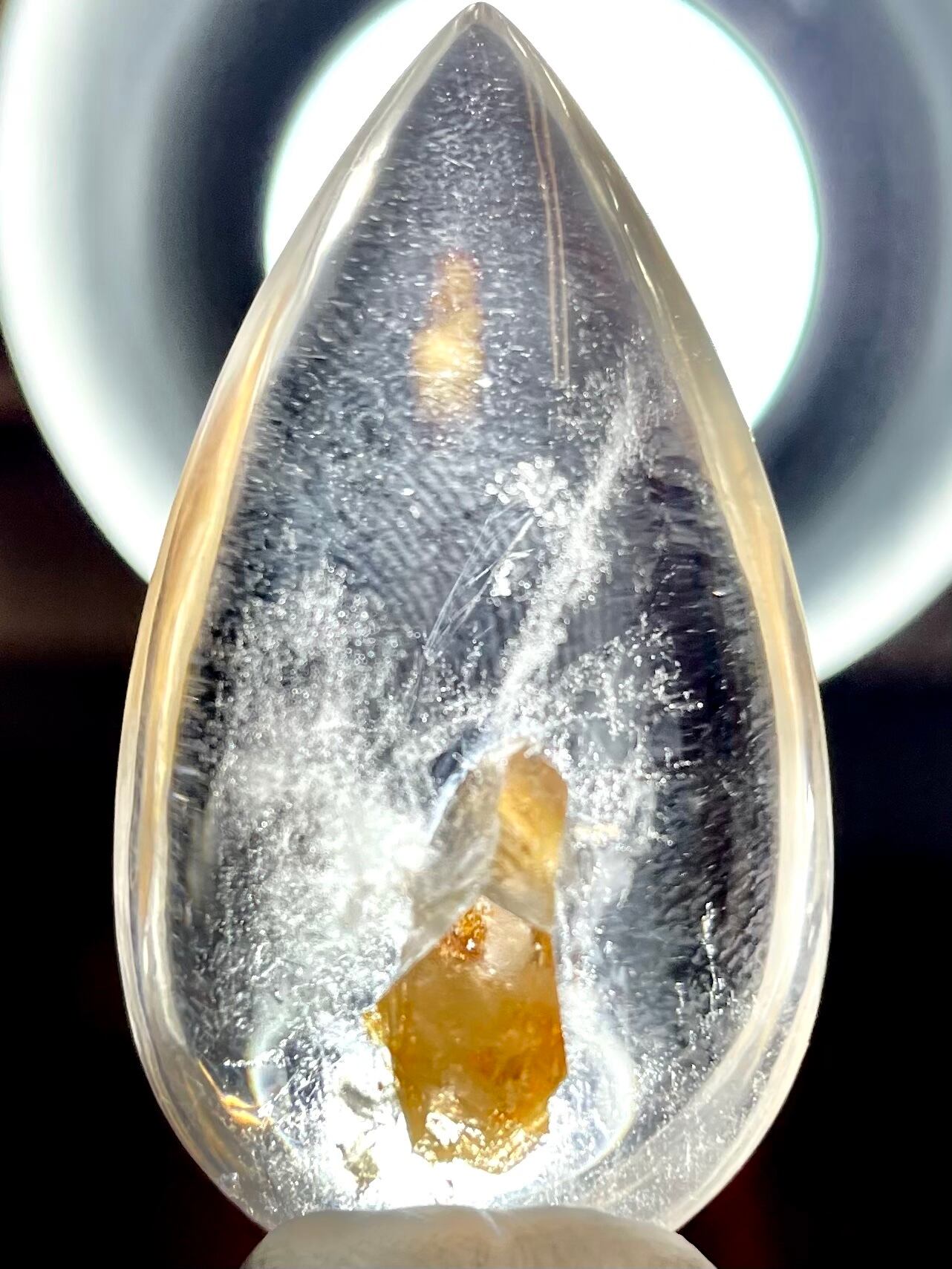 ドロップ型の研磨加工で、内在するクオーツのエネルギーをコクーン(まゆ)の中で成長拡大させて、持ち主の癒し、エネルギー調整をサポート。