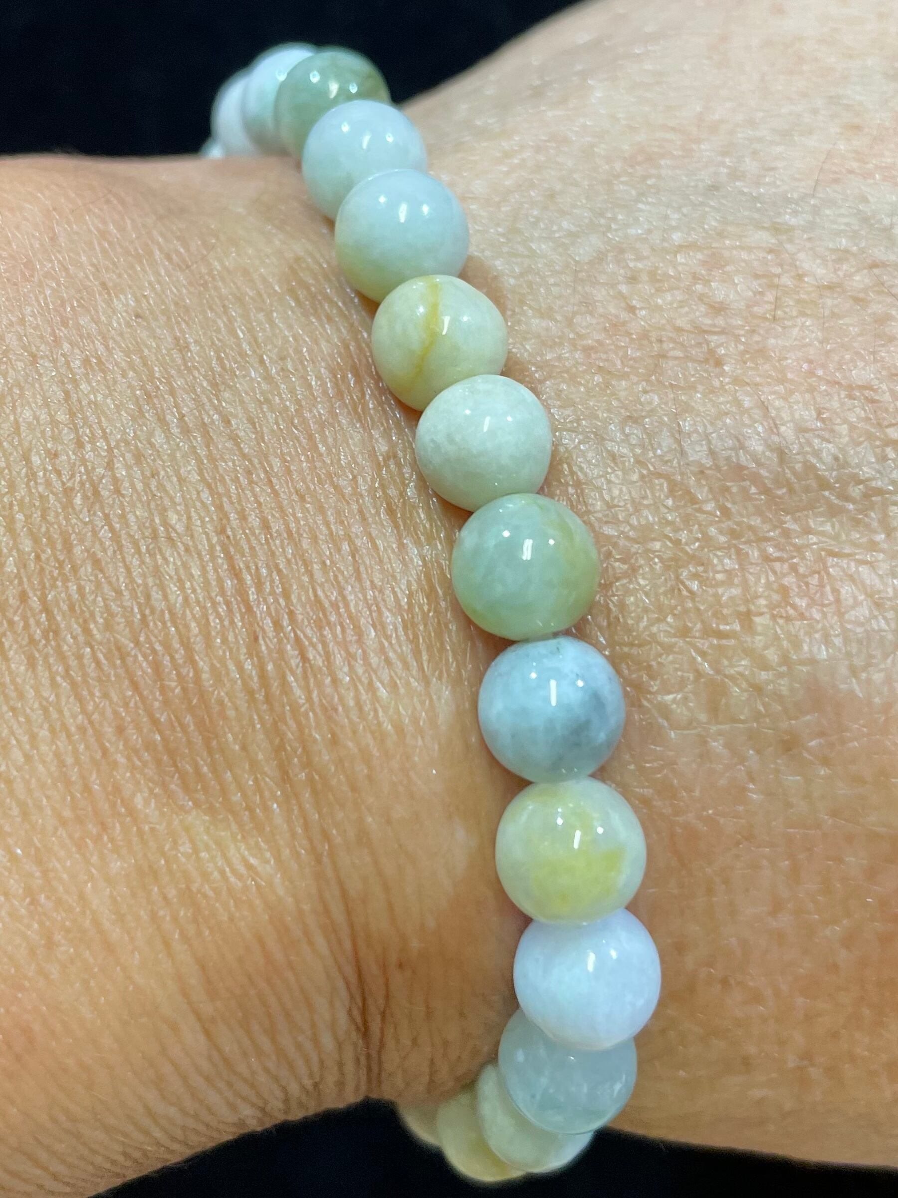 8) 繁栄・長寿・幸福・開花・安定!ハイクオリティ・ミャンマー産「翡翠」ブレスレットAAA(7〜7.5mm)
