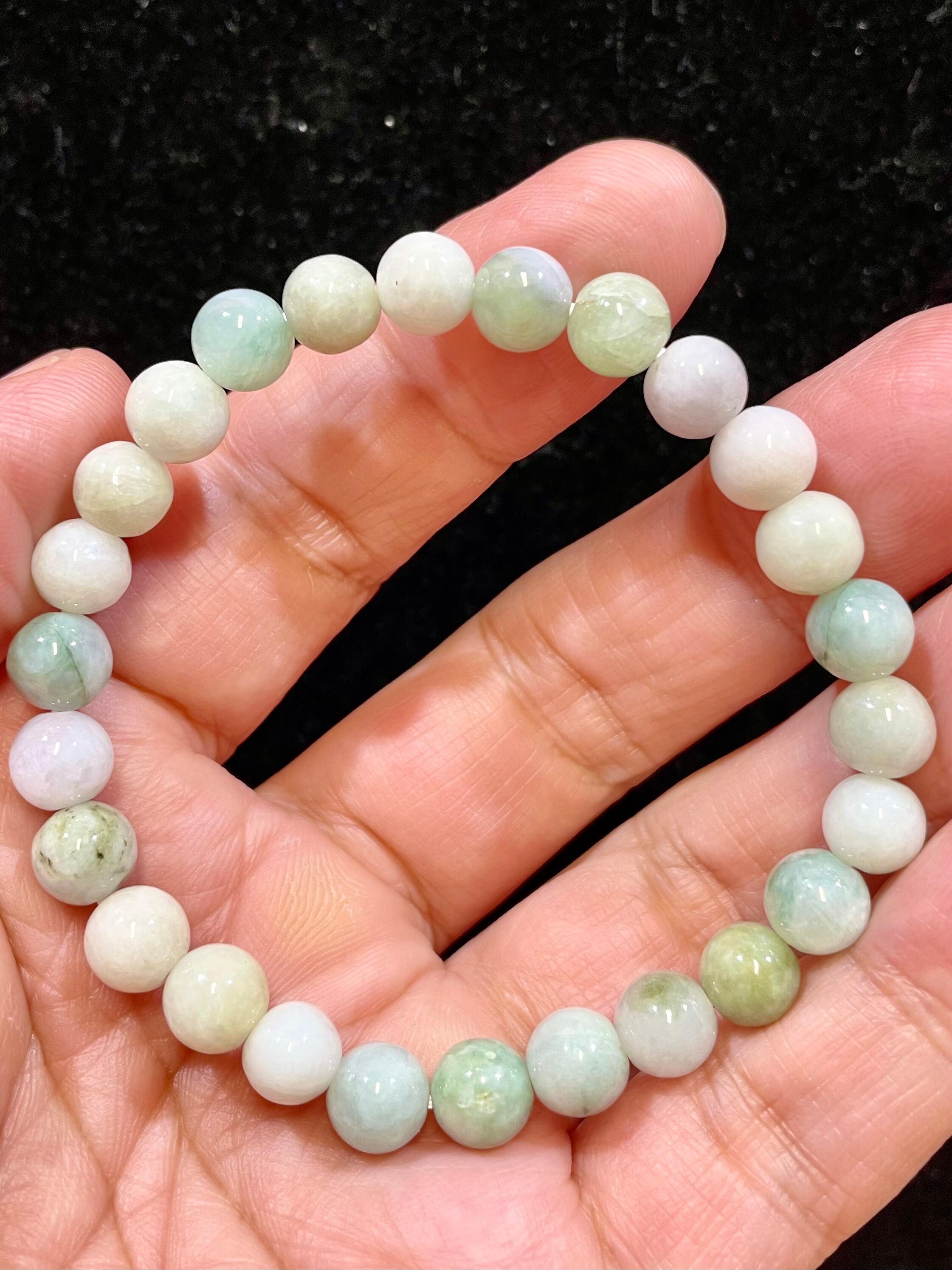 9) 繁栄・長寿・幸福・開花・安定!ハイクオリティ・ミャンマー産「翡翠」ブレスレットAAA(7〜7.5mm)