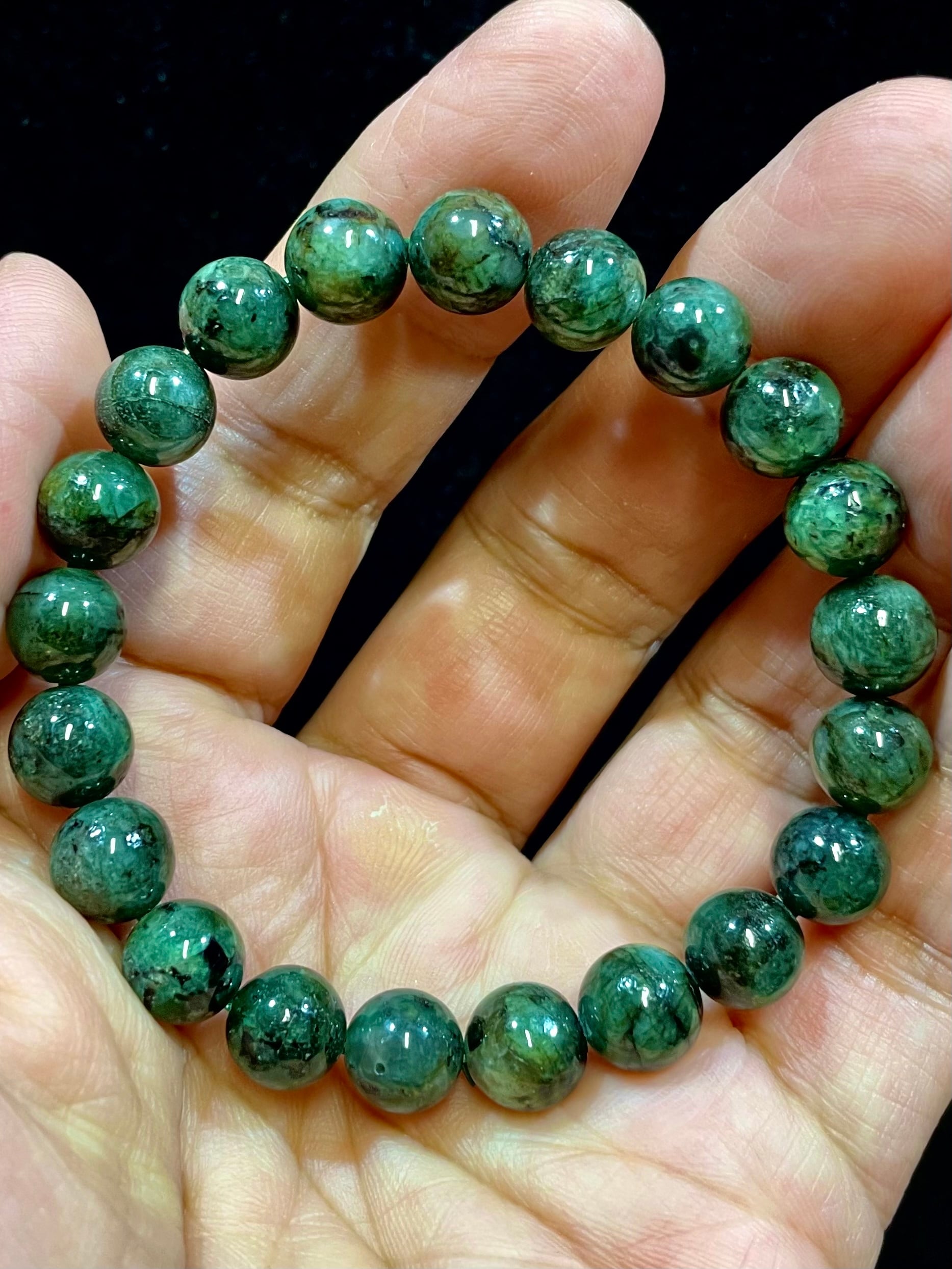 鮮やかなエメラルド原石を研磨したブレスレット。
