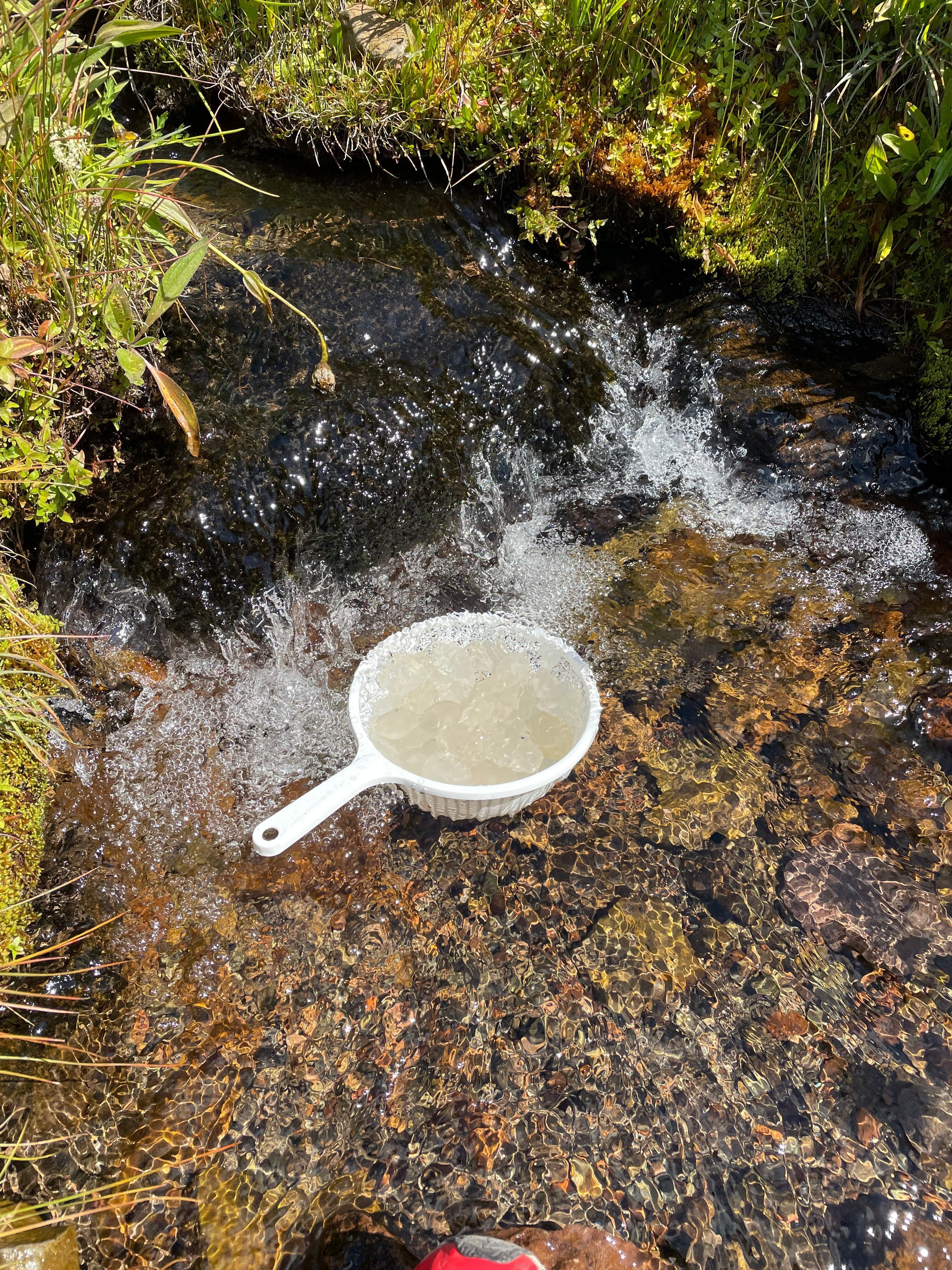ダイヤモンドや金の鉱床が上流にある川で、川底の窪みに入り込んだ水晶が窪みの中でコロコロ動いているうちに丸く角が取れ、流れて来るダイヤモンドや金と一緒に堆積され(比重の重いダイヤモンドや金は下の方)、長い年月が経ち、川ではなくなり、土で覆われた状態になっても、元々が川であったため、水分が多いその土地に落雷が起きる事で、その高熱により表面が溶けた雷水晶になります。