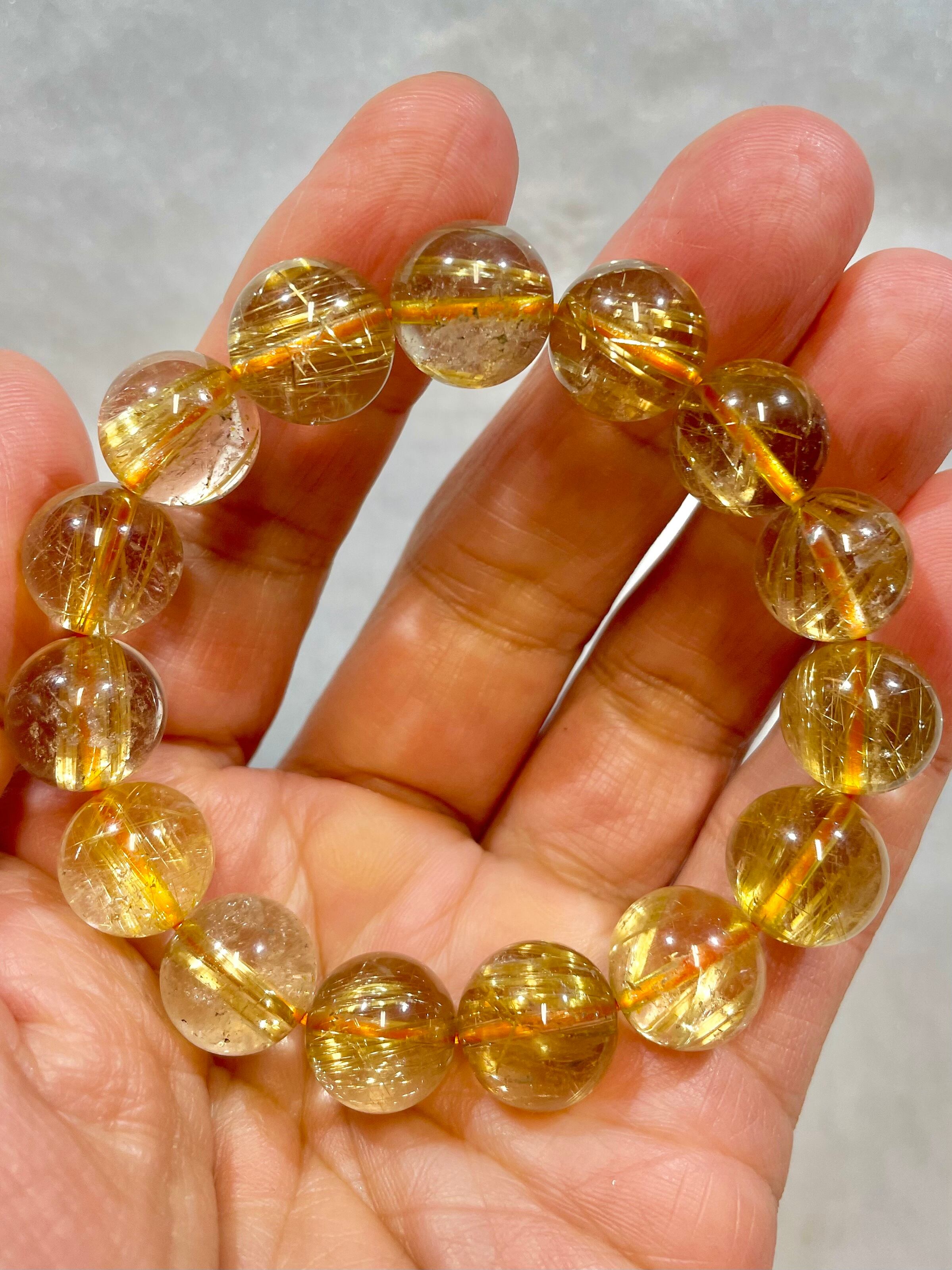 大変透明度が高いクオーツに、鮮やかなゴールドのルチルが内包されている、格調高いゴールド・ルチルのブレスレットです。