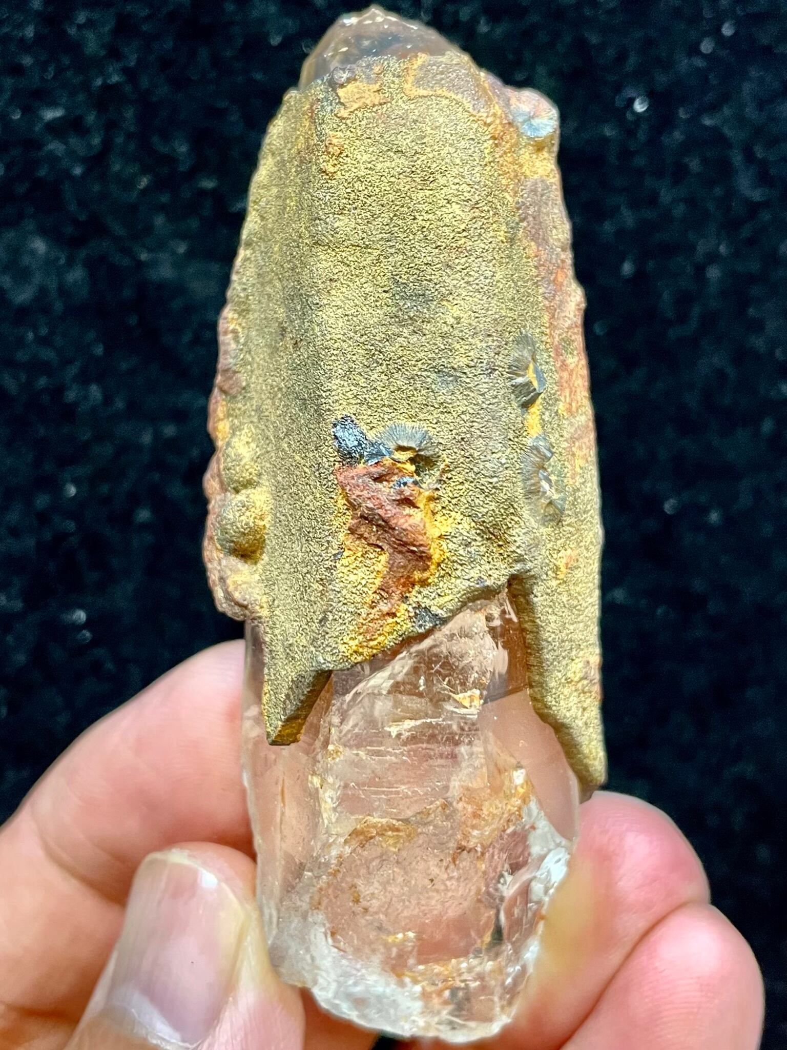 極めて透明度が高い水晶が、鉄(アイアン)をまといながら成長している珍しいものです。