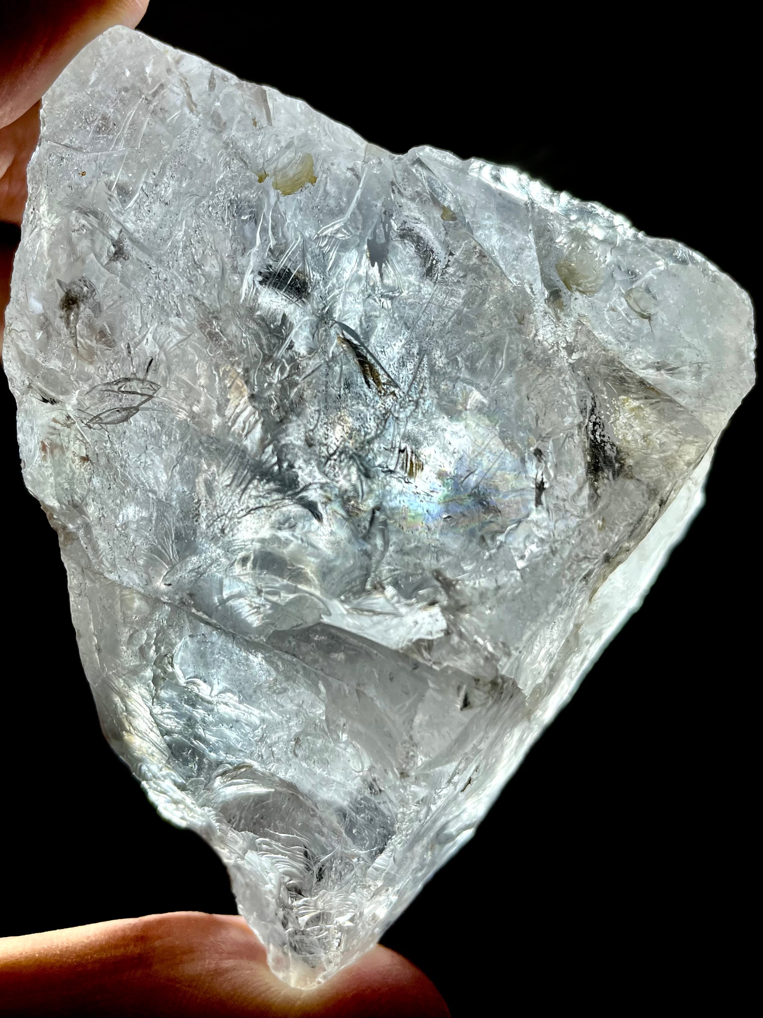 乳白色である本来のメタモルフォーシス天然原石が、剥き出された後、長い年月の期間、天日である太陽光の紫外線に晒された事により、薄くラベンダーカラーに変色した偶然の産物です。