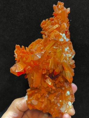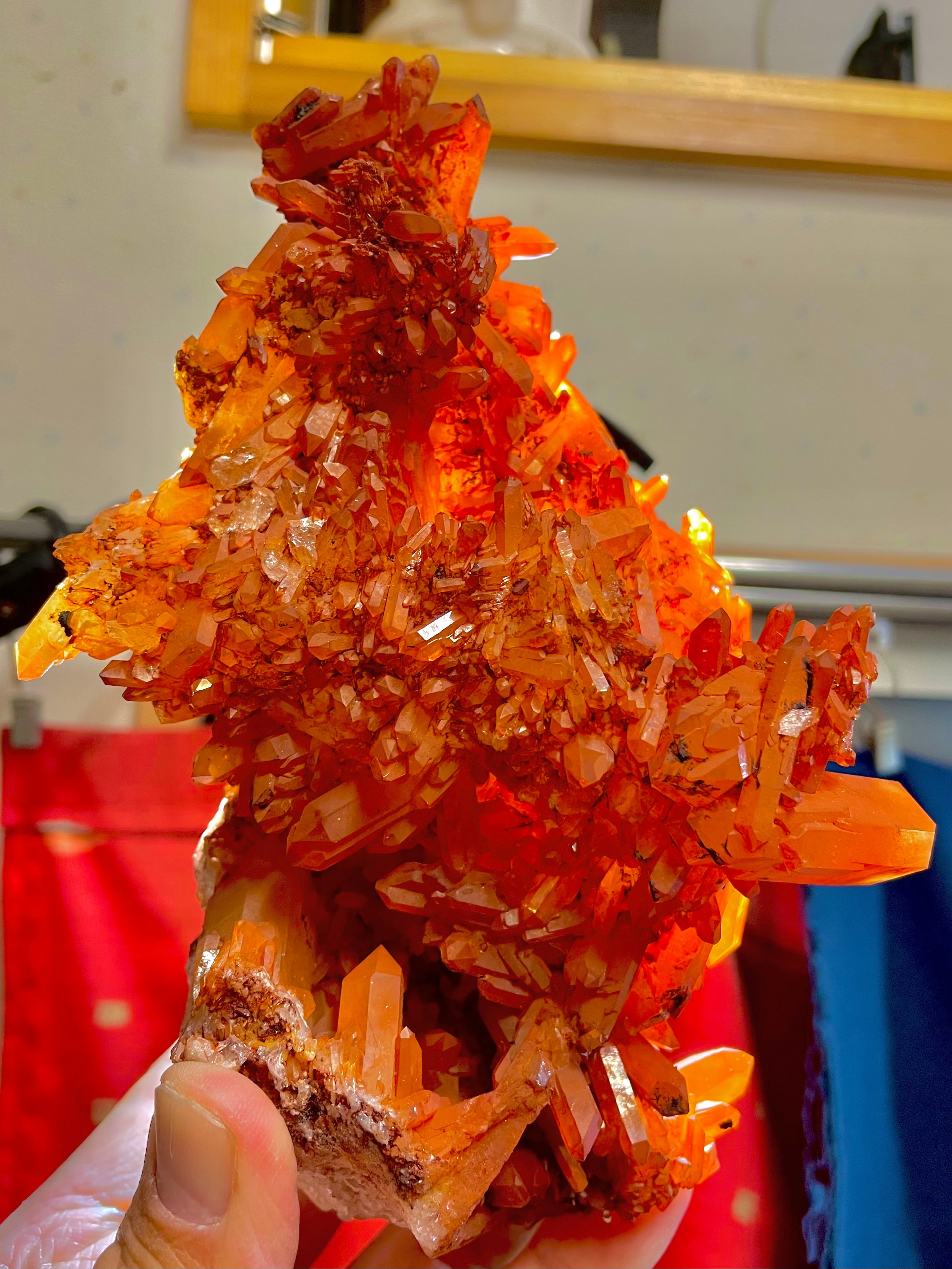 細かいタンジェリンDTクオーツが密集した大型クラスターです。